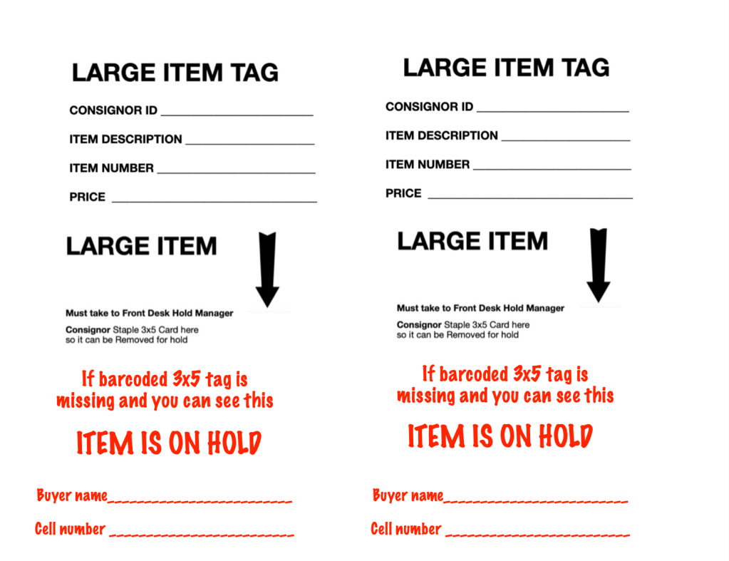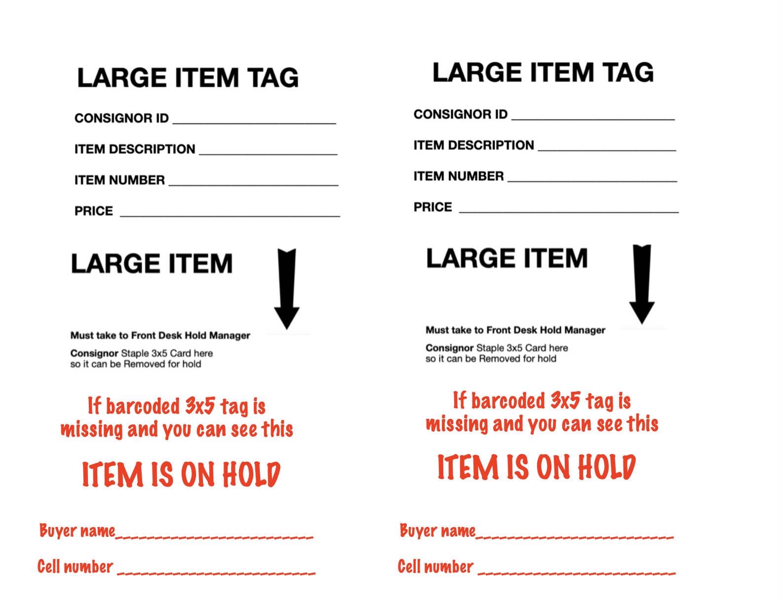 π If a large item is missing its 3×5 tag, that means it’s already on hold β check with the front desk if youβre unsure.